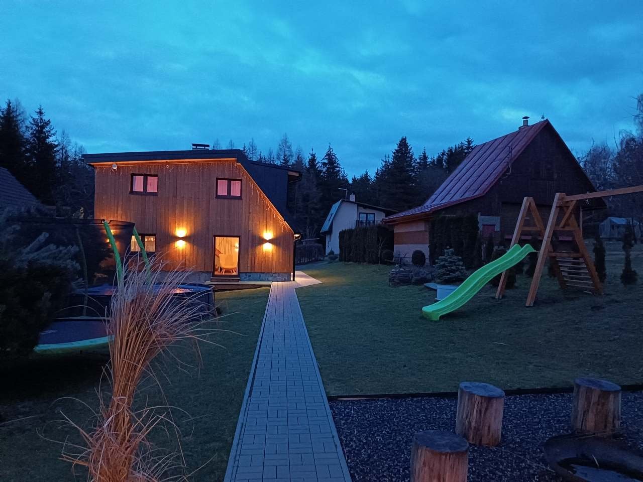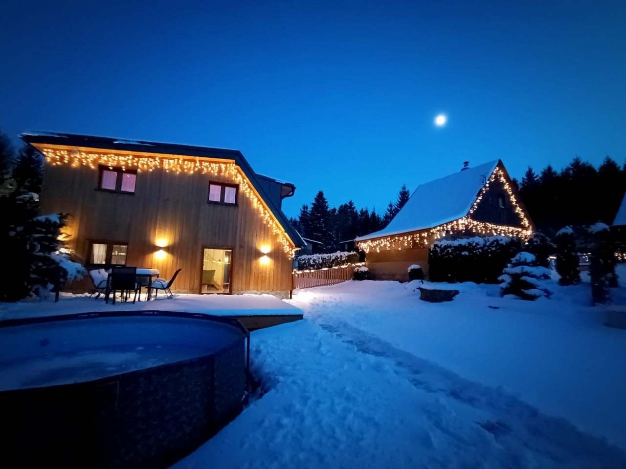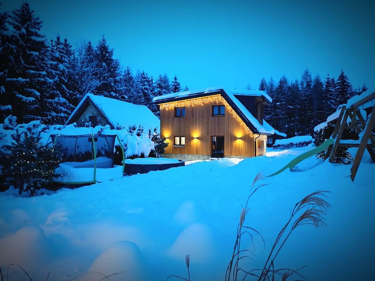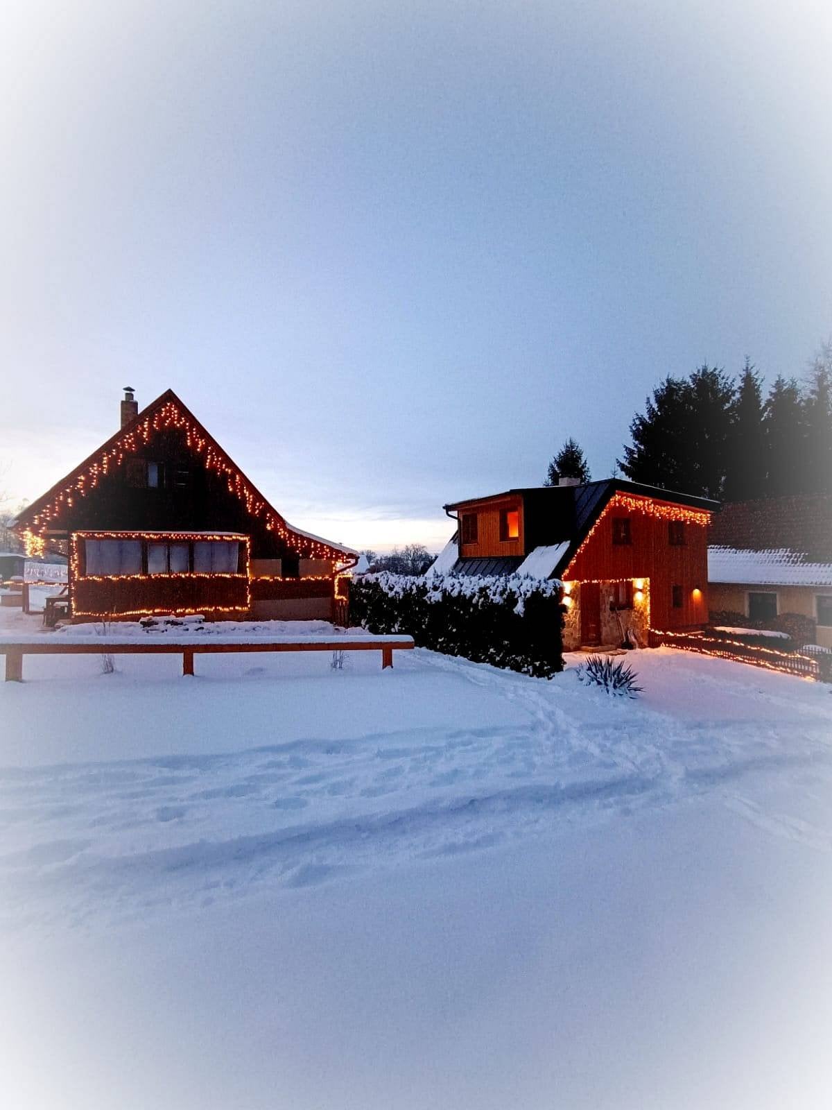 V této galerii najdete reálné fotografie interiéru i exteriéru, které vám přiblíží atmosféru místa, kde se spojuje wellness ubytování, klid lesa a naprosté soukromí.
