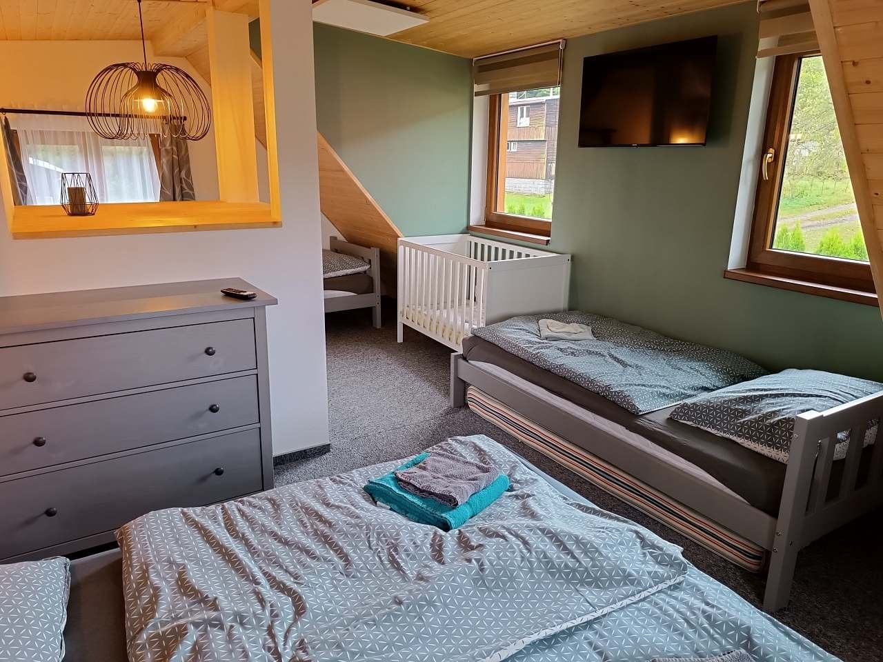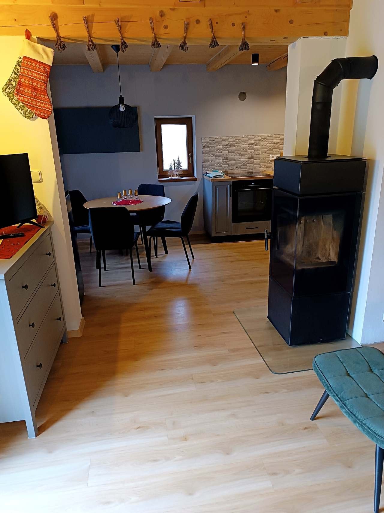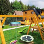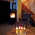 Uvidíte útulný interiér s krbovými kamny, plně vybavenou kuchyni, komfortní ložnice i zázemí pro ubytování s dětmi. Nechybí samozřejmě fotografie vnitřní vířivky a infrasauny – tedy toho, co dělá z našeho objektu výjimečné rodinné wellness ubytování na Vysočině.